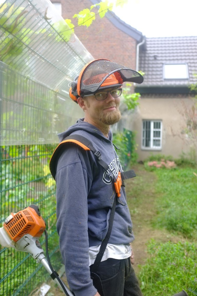 Seit einiger Zeit ist Dominic im Tierheim angestellt, um Gartentätigkeiten auszuführen und auch uns auf dem TiNa-Hof unter die zarten Arme zu greifen. Er hat einen grünen Daumen und richtet auf dem Hof das ein oder andere, schnibbelt an Bäumen herum und hat jetzt den Katzengarten vor der Brust. Unser Wunsch: Wege anlegen, zwei Sandkästen (damit die werten Katzengesellen ihre Hinterlassenschaften komprimieren), Brennnesseln entfernen und die Bereiche zwischen den Wegen dürfen wild bleiben. Man sieht jetzt schon die zukünftigen Wege und wir freuen uns über eine “gezähmte Wildnis”. Danke Dominic!